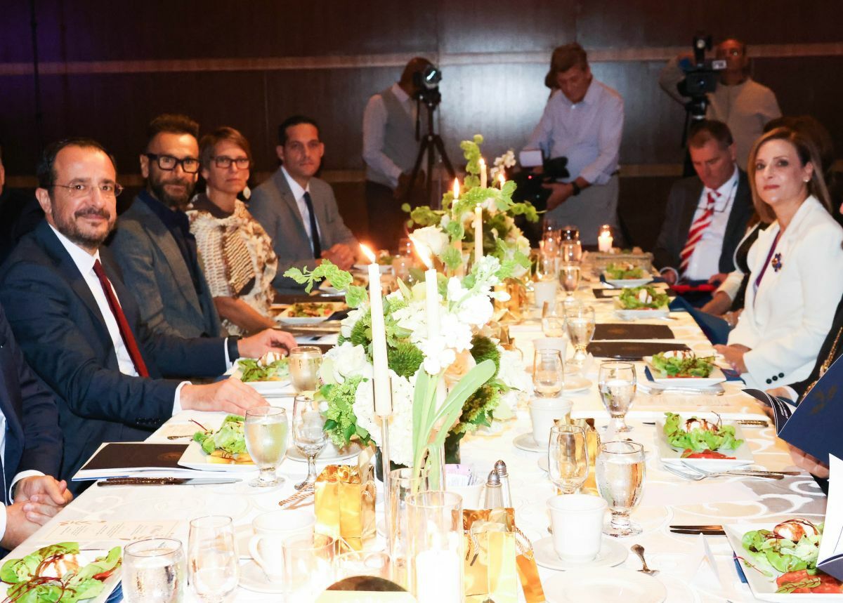 “Είμαι σίγουρος -είπε ο Κύπριος Πρόεδρος- ότι ο Πάνος και η Μαρίνα, οι σημερινοί τιμώμενοι, μπορούν να επιστρέψουν στην Κύπρο, και θέλουμε να σας φέρουμε στην Κύπρο γιατί είμαστε περήφανοι για τα επιτεύγματά σας και, ναι, είναι σημαντικό να συνεισφέρετε στην αμερικανική οικονομία, αλλά θέλουμε να συνεισφέρετε και στη δική μας πατρίδα και η χώρα μας έχει τεράστιες προοπτικές”.