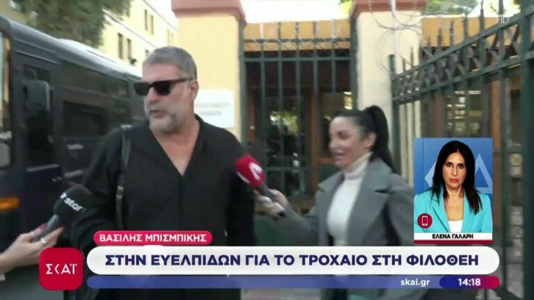 Ο Μπισμπίκης βρέθηκε από νωρίς σήμερα το πρωί στα δικαστήρια της πρώην σχολής Ευελπίδων, για να δικαστεί για τροχαίο που προκάλεσε στις 27 Σεπτεμβρίου, όταν μετά από νυχτερινή του έξοδο πήρε σβάρνα αυτοκίνητα και στη συνέχεια εγκατέλειψε το σημείο.