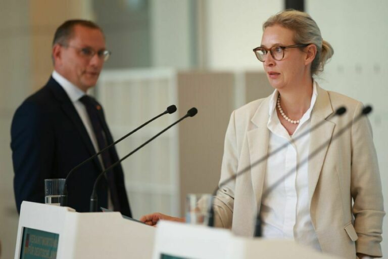 Πρώτη και μάλιστα με διαφορά δύο μονάδων αναδεικνύεται σε νέα δημοσκόπηση η Εναλλακτική για την Γερμανία (AfD), με την Χριστιανική Ένωση (CDU/CSU) να καταγράφει το χαμηλότερο ποσοστό της των τελευταίων έξι μηνών.